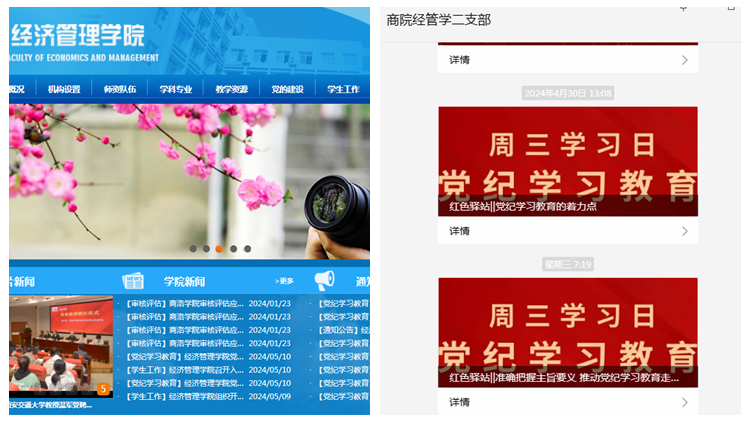 开设一个“党纪学习教育”专栏。学院党委按照党纪学习教育方案部署,指导学院各宣传媒体平台开设“党纪学习教育”专栏,经济管理学院网站开设“党纪学习教育”专栏,已推送党纪学习教育学习链接、学习卡片30余条;学院网站新闻报道学院党纪学习教育专题新闻近10篇;各党支部利用支部自媒体公众号推送党纪学习教育新闻报道50余次;学生第二党支部微信公众号平台开设了党纪学习教育“周三学习日”专栏,每周三定期发布学习内容,深入发挥互联网+党建的育人功能与学习效应。