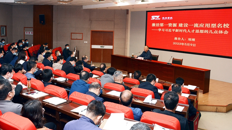 邓理在报告中以《激活第一资源建设一流应用型名校——学习习近平新时代人才思想的几点体会》为题,围绕“正确认识是前提;遵循制度是基础;德才兼备、以德为先是原则;用心尊重是关键;人人皆可成才、人人尽展其才是目的”等五个方面,详细阐述了习近平总书记关于新时代人才工作的重要论述重要指示精神,针对如何激发人才创新活力,为威尼斯一流学院建设提供有力的人才支撑作出了具体指导。